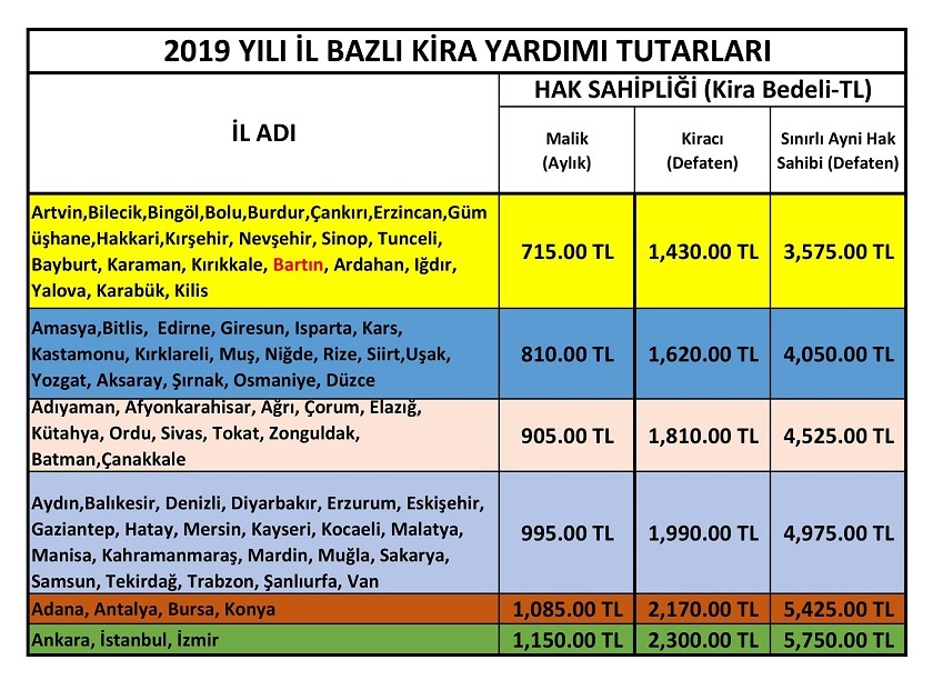 Geçen yıl illere göre kira yardımları en düşük 595 lira, en yüksek 960 lira olarak belirlenmişti. Peki bu yıl en düşük ve en yüksek kira yardımı ne kadar oldu?