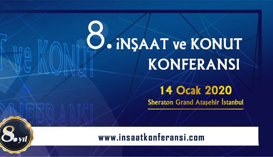 8.İnşaat ve Konut Konferansı, 14 Ocak 2020 Salı günü, Sheraton Grand Ataşehir İstanbul’da düzenlenecek. Konferans, Sektörün ticari ve güncel olarak tartışılmasına ve yeni yaklaşımlar geliştirmesine katkı sağlamak, geleceğe yol haritaları çizmek, efektif networking ve tarafsız bilgilenme platformu sunmak amacıyla düzenlenmekte.
