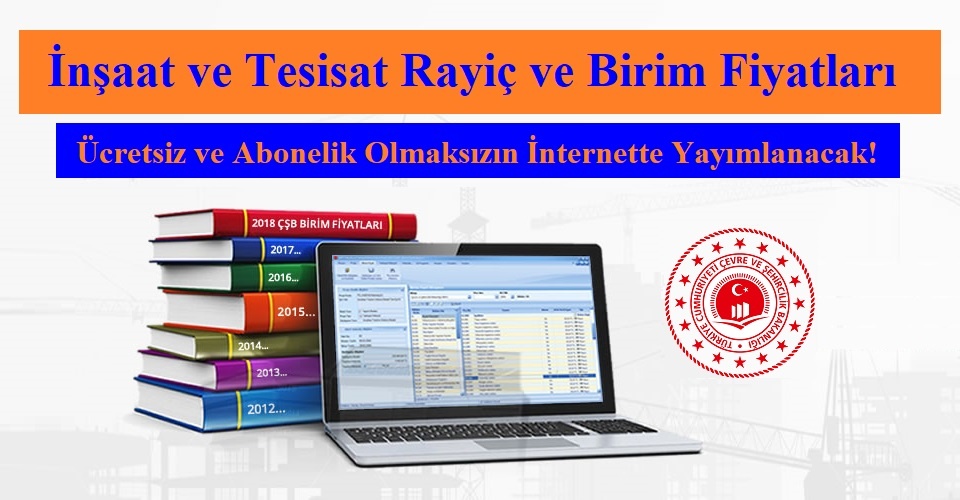 Çevre ve Şehircilik Bakanlığı tarafından her yıl hazırlanarak yayınlanan İnşaat ve Tesisat Rayiç ve Birim Fiyatlarının internet ortamında birimfiyat.csb.gov.tr adresinden ücretli abonelik yöntemi ile sınırlı olarak görüntülenmesi yapılmaktadır.