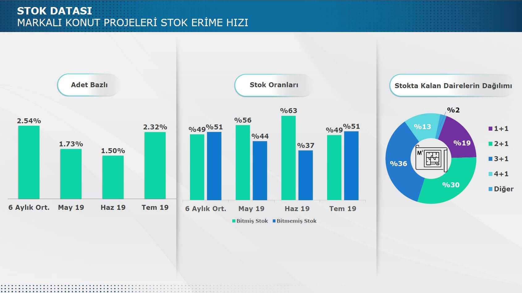 Temmuz ayı stok erime hızı rakamları değerlendirildiğinde stoklarda adet bazında %2,32 oranında erime gözlenmiş olup, Temmuz ayında bir önceki aya göre,