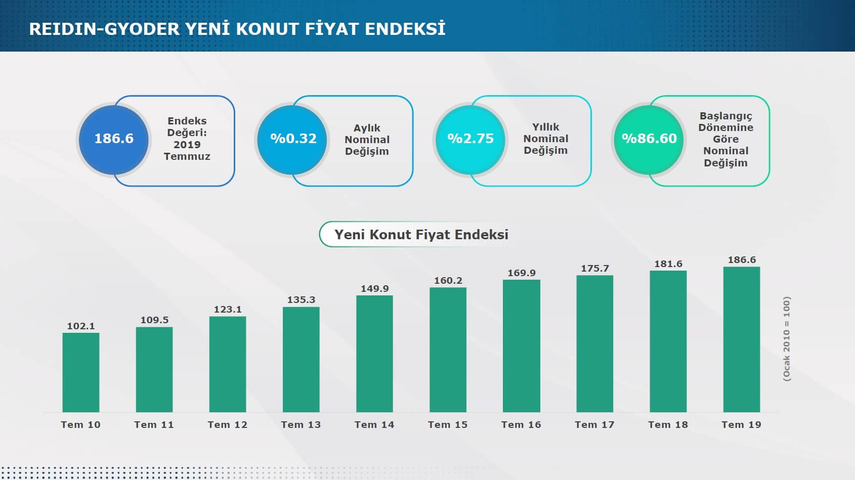 REIDIN-GYODER Yeni Konut Fiyat Endeksi sonuçlarına göre, Temmuz ayında;