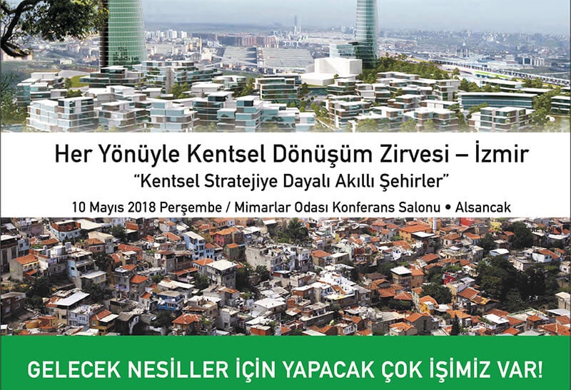 Türkiye gündeminin son yıllardaki en önemli konu başlıklarından biri olan kentsel dönüşüm, İzmir’de Alsancak Mimarlık Merkezi Konferans Salonu’nda 11’inci Her Yönüyle Kentsel Dönüşüm Zirvesi’nde masaya yatırıldı. İzmir Büyükşehir Belediye Başkanı Aziz Kocaoğlu başta olmak üzere ilçe belediye başkanları ve gayrimenkul sektörünün önde gelen temsilcilerinin konuşmacı ve konuk olarak yer aldığı zirvenin sonuç bildirgesi ve manifestosu yayınlandı.