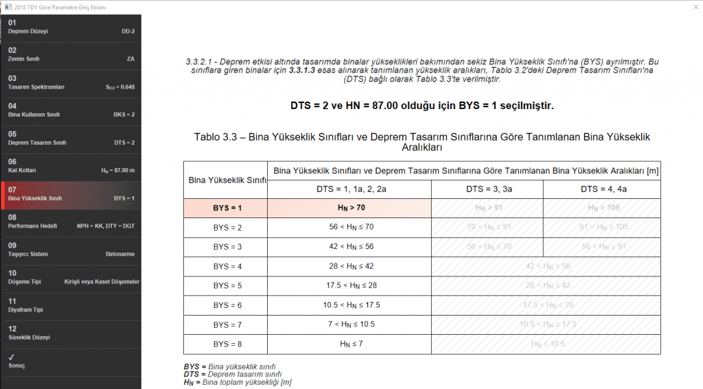 - ideCAD Statik 9 2018 Deprem Yönetmeliği Bina Yükseklik sınıfı seçimi