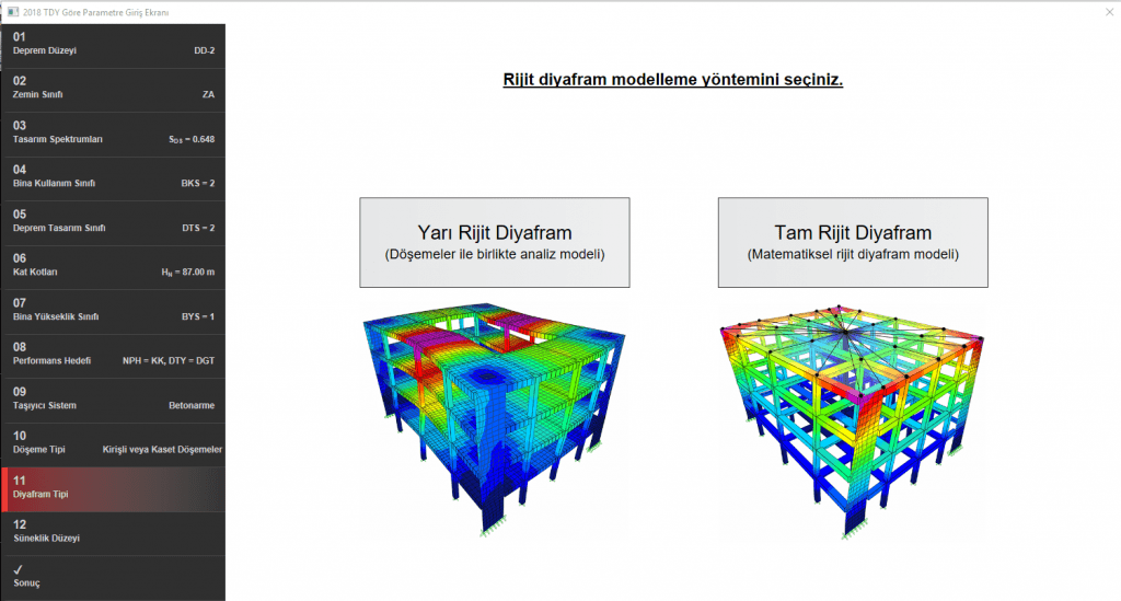 - ideCAD Statik 9 2018 Deprem Yönetmeliği Diyafram Tipi seçimi