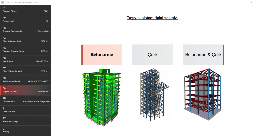 - ideCAD Statik 9 2018 Deprem Yönetmeliği Taşıyıcı Sistem seçimi