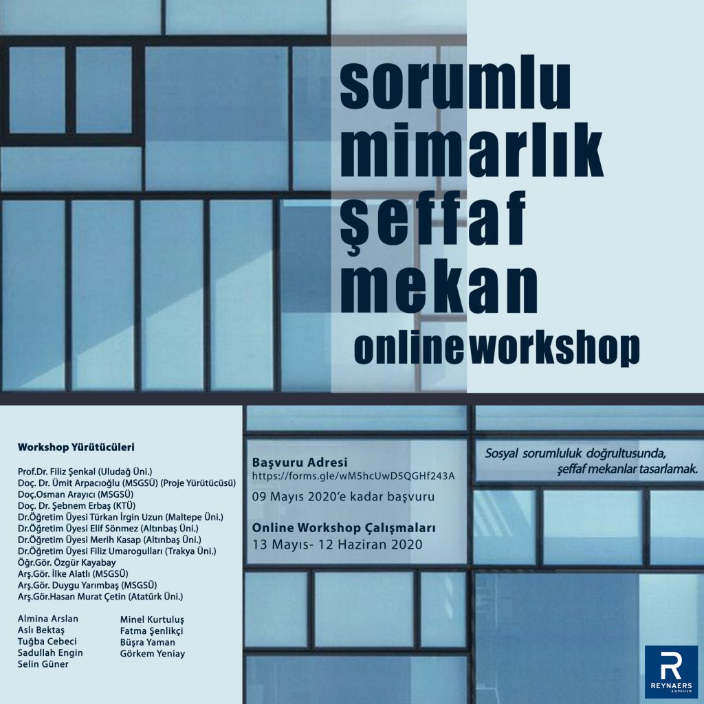 Daha fazla bilgi ve başvuru formu için: https://forms.gle/wM5hcUwD5QGHf243A, (Reynaers) Online Workshop: “Sorumlu Mimarlık, Şeffaf Mekan”