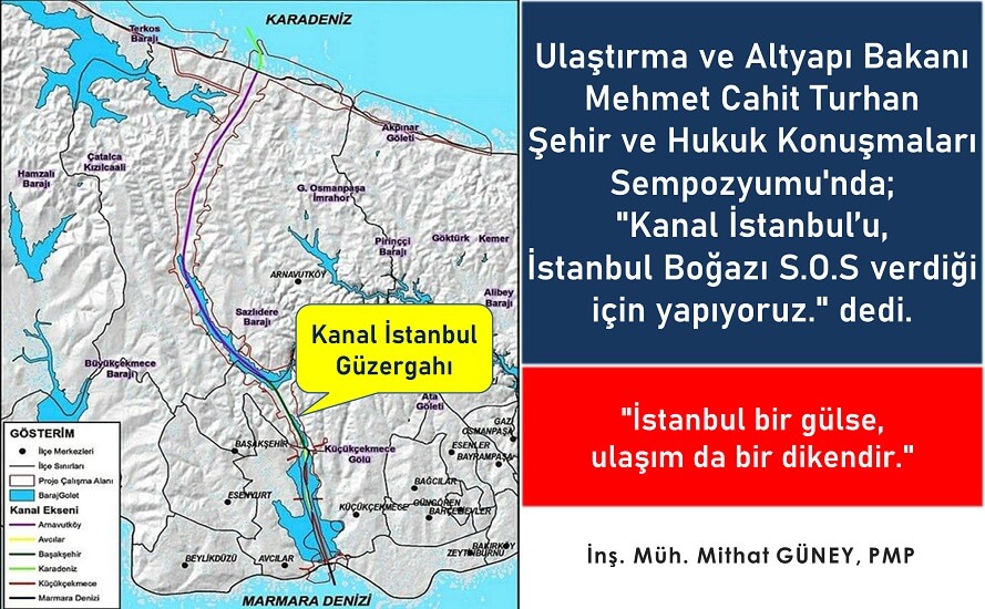 Ulaştırma ve Altyapı Bakanı Mehmet Cahit Turhan, Şehir ve Hukuk Konuşmaları Sempozyumu’nda; “Kanal İstanbulu, İstanbul Boğazı S.O.S verdiği için yapıyoruz.” dedi.