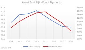 Özetle, konut alımları için yeterli gelirdeki azalma, stok artışı ile konut fiyatlarında görülen azalma ve reel getirinin düşmesi konut sahipliği oranlarının düşüşünde etkili olmuştur.