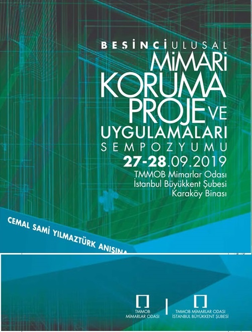5. Ulusal Mimari Koruma Proje ve Uygulamaları Sempozyumu 27-28 Eylül 2019 tarihinde İstanbul’da gerçekleştirilecektir. TMMOB Mimarlar Odası Genel Merkezi’ndeki sempozyum Mimar Cemal Sami YILMAZTÜRK anısına düzenlenmektedir. Toplantıda, özgün işlevi devam eden ya da yeni işlevlendirme önerilmiş koruma projeleri ile arkeolojik alanlar için üretilmiş proje ve uygulamaların yanı sıra mevzuat değişiklikleri, ilke kararları, koruma kurulu kararları ve KUDEB uygulamaları tartışılacaktır.