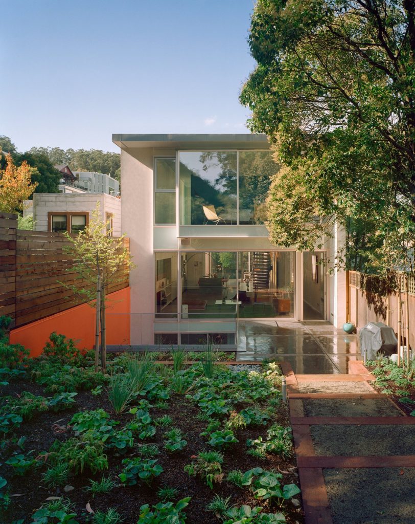Mt Tamalpais’in geniş manzarası, evin etrafındaki ağaçların bahçeye yakınlığı ve etrafındaki tepelerin dik bir eğime sahip olması, yapının mimari için ilham kaynağı olmuştur. Konumu itibariyle dik bir yamaçta ve kırmızı ormanlar arasında kalan bu yapı 3 katmandan oluşmaktadır. Üst katta iki yatak odası, bir ev ofisi ve üst bahçede bulunan havuza bağlanan bir eğimli bir köprü bulunmaktadır.