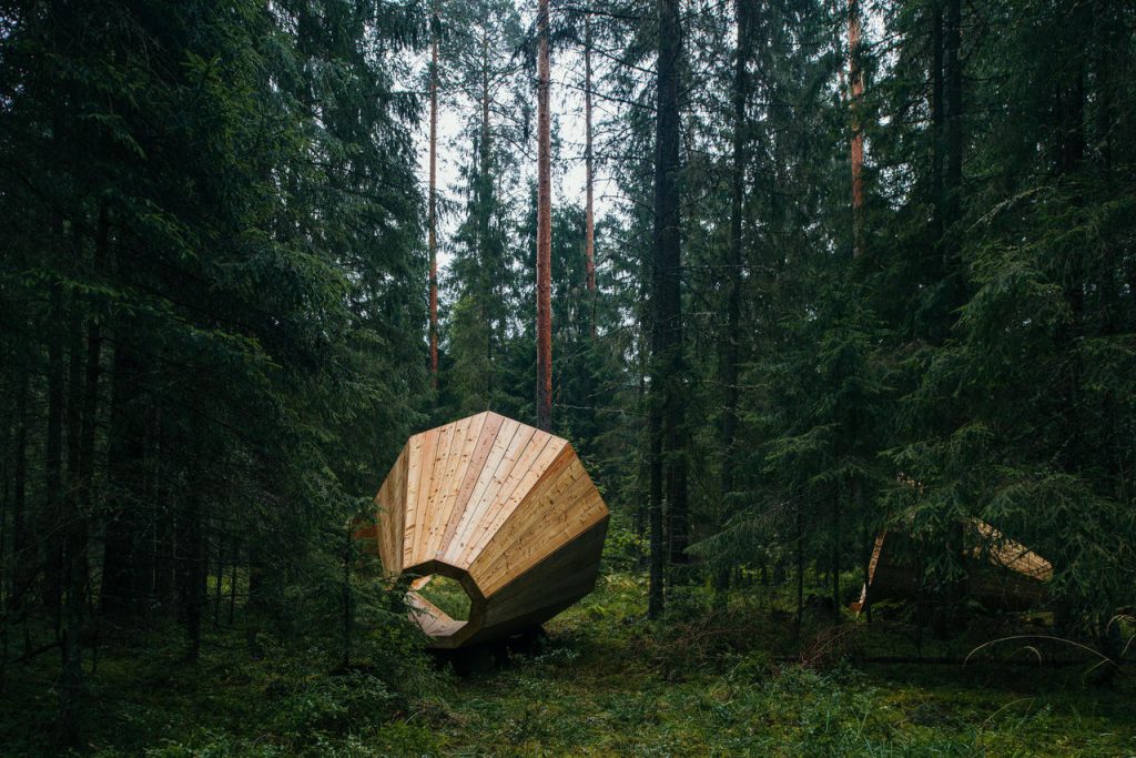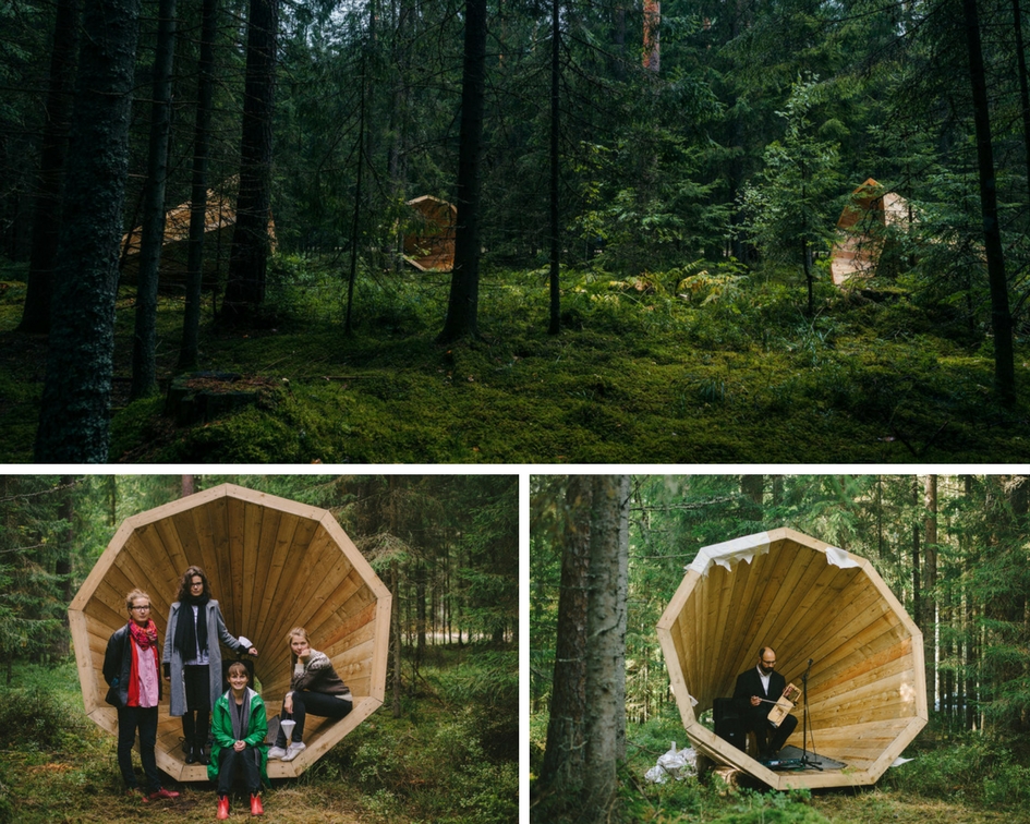 Estonya Güzel Sanatlar Akademisi, içmimarlık bölümü öğrencilerinden Birgit Õigus ve arkadaşlarının, dinlenmek, tefekkür ve hepsinden önce, etraflarındaki doğayı dinlemek ve anlamak için tasarladığı Ruup diye adlandırılan devasa megafonlar Pähni Nature Centre’ da sergileniyor.