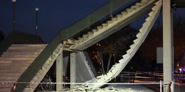 Üzerinde yayalar yürüdüğü sırada üst geçidin ayaklarından bir tanesindeki merdivenlerde henüz belirlenemeyen nedenle çökme meydana geldi.