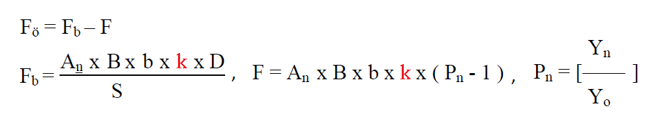 Fb = (An x B x b x k x D)/S = [100.000,00 x 0,9 x 0,3 x 0,4 x (5,66-5,66)]/5,00 = 0,00 TL