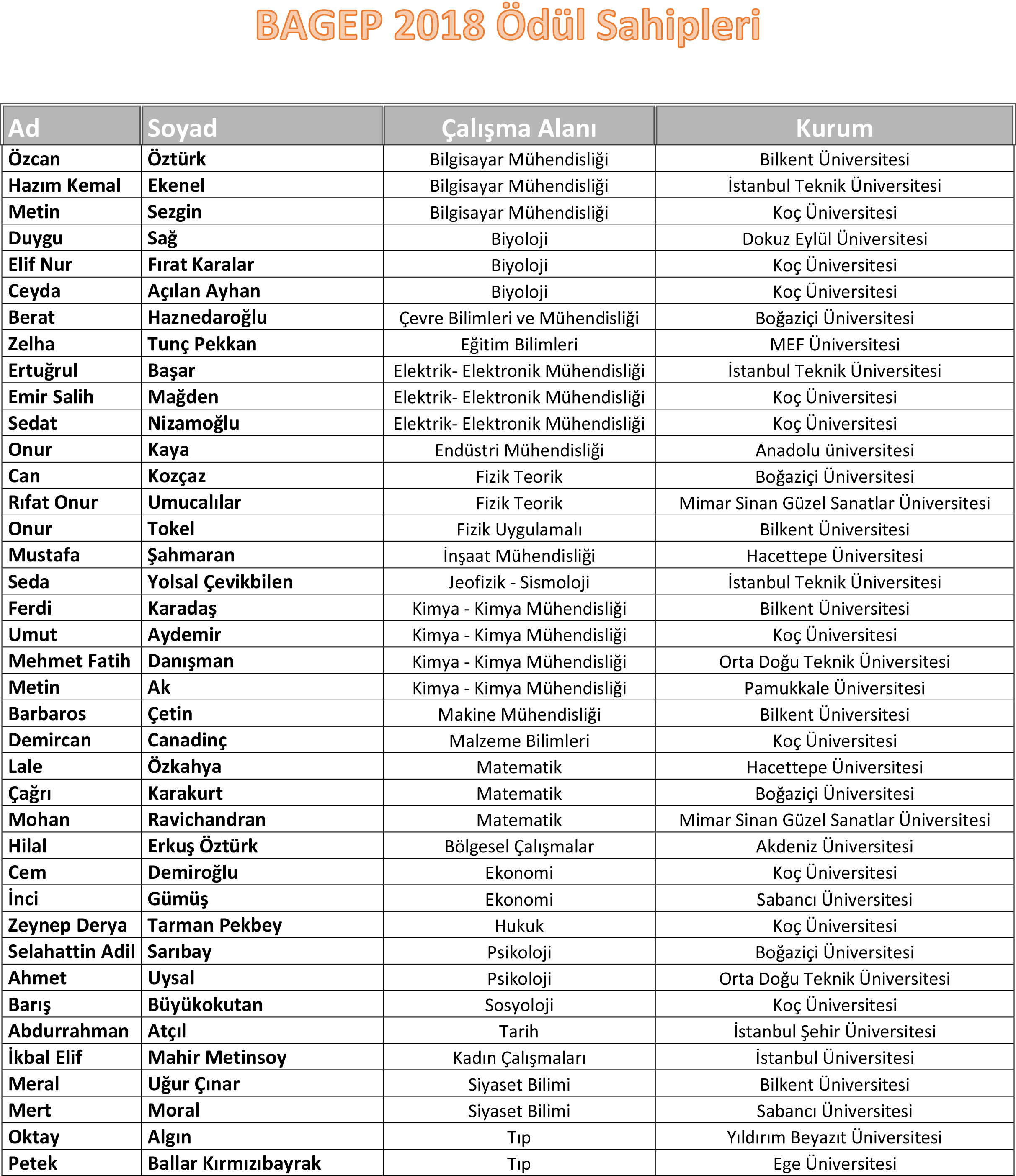 Genç bilim insanlarının özgeçmişi ve önerdiği proje değerlendirilerek verilen ödül kapsamında Türkiye’den farklı bilim alanlarından kabul edilmiş 312 nitelikli başvurudan, 39’u ödüle layık görüldü. Türkiye’nin önde gelen üniversitelerinin yer aldığı kazananlar listesine bu yıl AÜ, Doç. Dr. Hilal Erkuş Öztürk’ün kazandığı ödülle girdi.