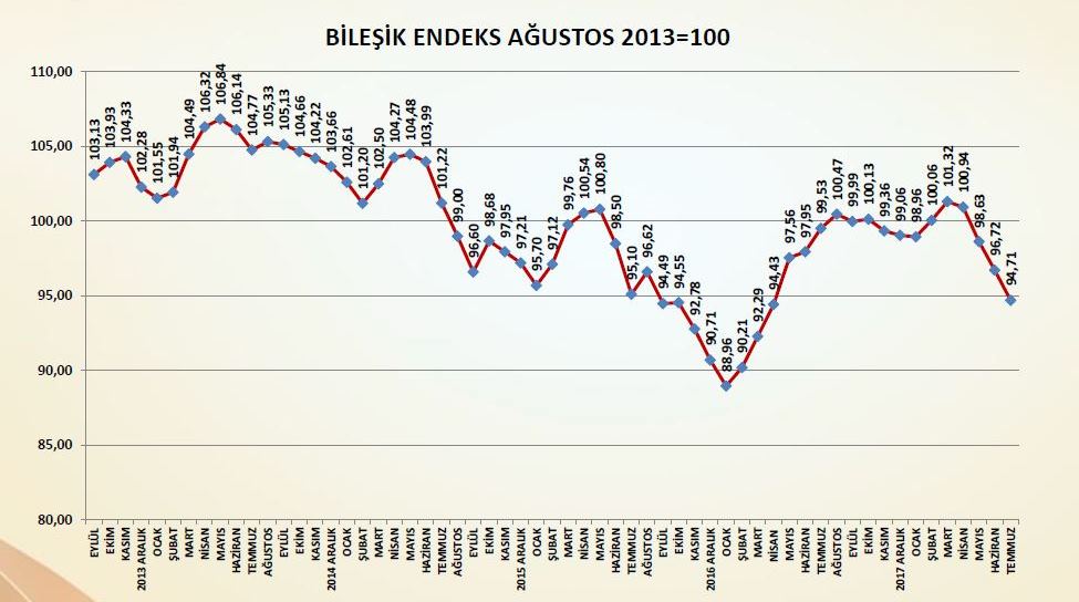 Haziran ayındaki seçimlerin tamamlanmasının ardından Temmuz ayında yaşanan gelişmeler ile birlikte beklentilerde bozulma yaşandı. Öncelikle faaliyetler zayıf bir büyüme gösterdi. Mali göstergelerde yaşanan artışlar beklentileri olumsuz etkiledi. Dış politikada yaşanan gerginlikler de beklentilere olumsuz etki yaptı.Beklenti Endeksi Temmuz ayında bir önceki aya göre 2,8 puan birden düştü. Böylece son dört ayda beklentilerde toplam 6,9 puan gerileme yaşandı. Bu gerileme ile birlikte Temmuz ayı beklenti seviyesi geçen yılın aynı döneminin beklenti seviyesinin 4,6 puan altına indi. İnşaat malzemeleri sanayisine ilişkin beklentiler Temmuz ayında önemli ölçüde düştü. Önümüzdeki üç aya ilişkin alınan yurtiçi siparişlerde keskin düşüş devam etti. Önümüzdeki üç aya ilişkin ihracat siparişlerinde ise Temmuz ayında sınırlı bir artış yaşandı. Önümüzdeki üç ayın üretim, yatırım ve istihdam beklentileri ise yeniden gerileme gösterdi. Beklentilerdeki iyileşmenin ekonomi politikalarına ve dış politikadaki risklerin azalmasına bağlı kalmaya devam edeceği vurgulandı.