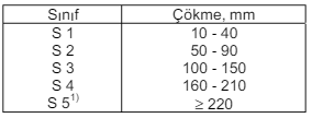 Beton kıvam sınıfı ve değerlerini TS EN 206’ da bulabiliriz. Aşağıdaki tablo TS EN 206’ dan alınmıştır.