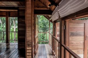 Her ahşap parçanın kendine özgü bir hikayesi var. Yerel mimari referans alınarak oluşturulan detayların yanında geliştirilerek yeniden üretilen detaylarda kullanılmış.