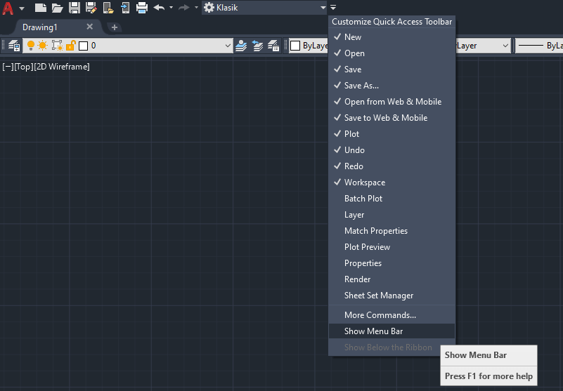 Merhaba arkadaşlar bu makalemizde Autocad klasik kullanan arkadaşlar için yeni versiyonlarda klasik menü oluşturma işlemlerini anlatacağım ..
