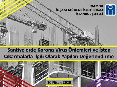İnşaat Mühendisleri Odası İstanbul Şubesi, Korona virüs önlemleri ile ilgili olarak şantiyeleri inceledi. İstanbul`daki pek çok şantiyesindeki uygulamaları bir araya getirdi. Yurtdışı inşaatlardan gelen bilgileri de göz önüne alarak bir değerlendirmede bulundu. İnşaat işkolunda işten çıkarmalara ve ücretsiz izin uygulamalarına yer verilen metinde proje bürolarının içinde bulunduğu sorunlar da yer aldı.