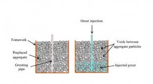 İri agreganın minimum 16 mm olması, donatı sıklığı nedeniyle dane çapı büyütülemiyorsa minimum ölçü 8mm’e kadar indirilmektedir. Agregaların yüksekten hortumlarla düşürülerek ve vibrasyona tabi tutarak iyi yerleşmeleri temin edilir. Prepakt beton harcı maksimum dane çapı 2mm’yi aşmayan kumla üretilmiş çok zengin çimento dozajlı harçlardan oluşur.