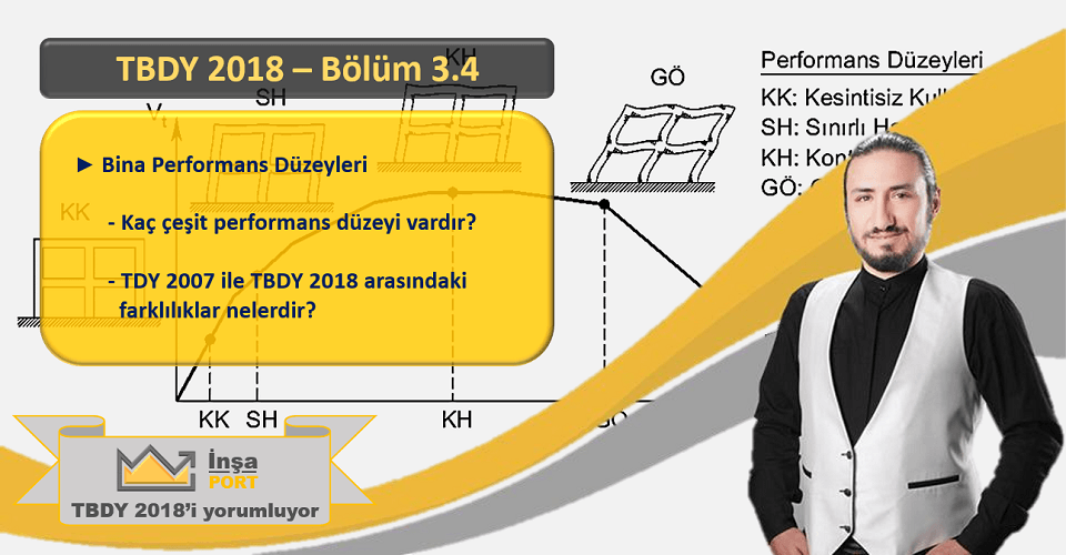 TDY 2007’de 3 farklı performans düzeyi bulunurken, TBDY 2018’de 4 farklı performans düzeyi bulunur (Tablo-1). Hasarın olmadığı veya ihmal edilebilir olduğu durum için eklenen “Kesintisiz Kullanım” performans düzeyi farklılık olarak göze çarpmaktadır.